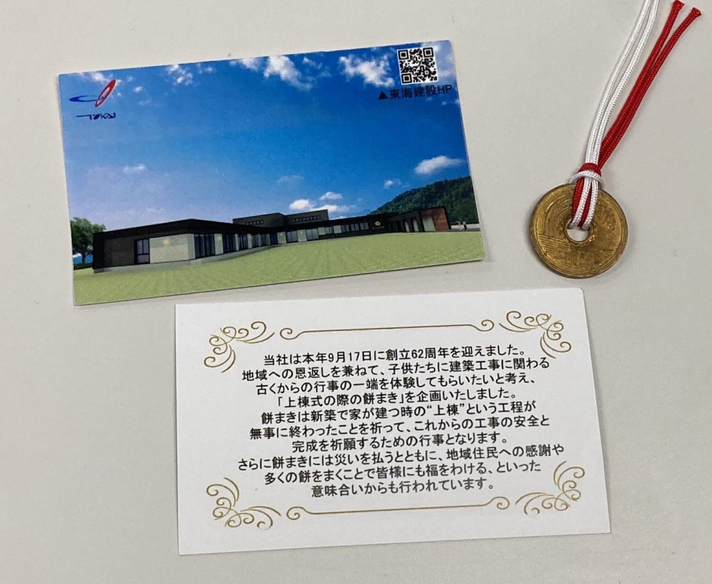 メッセージカードには完成イメージパースと、裏には上棟式の餅まきについて簡単に説明したものが書かれています✍️