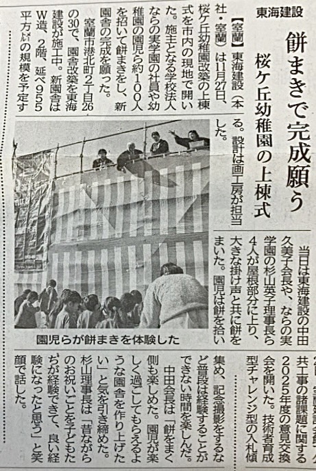 上棟式の餅まき【桜ヶ丘幼稚園】✨